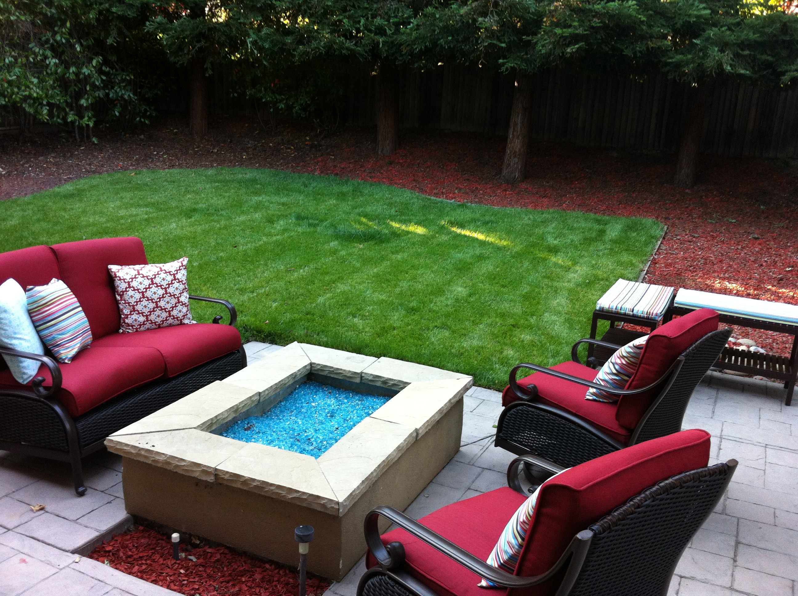 In one afternoon, our backyard had been transformed into an oasis.  Now we had lounge seats around the firepit and extra bench seating perfect for summer bbqs!