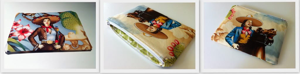 I’ve had this beautiful cotton Alexander Henry fabric for months now just waiting for the perfect project. The fabric has several scenes with beautiful Mexican women (cowgirls).