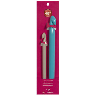 23. I have been making these for years. I use the crochet hook, Q. Buy them at Walmart or hobby lobby. They are usually blue plastic.