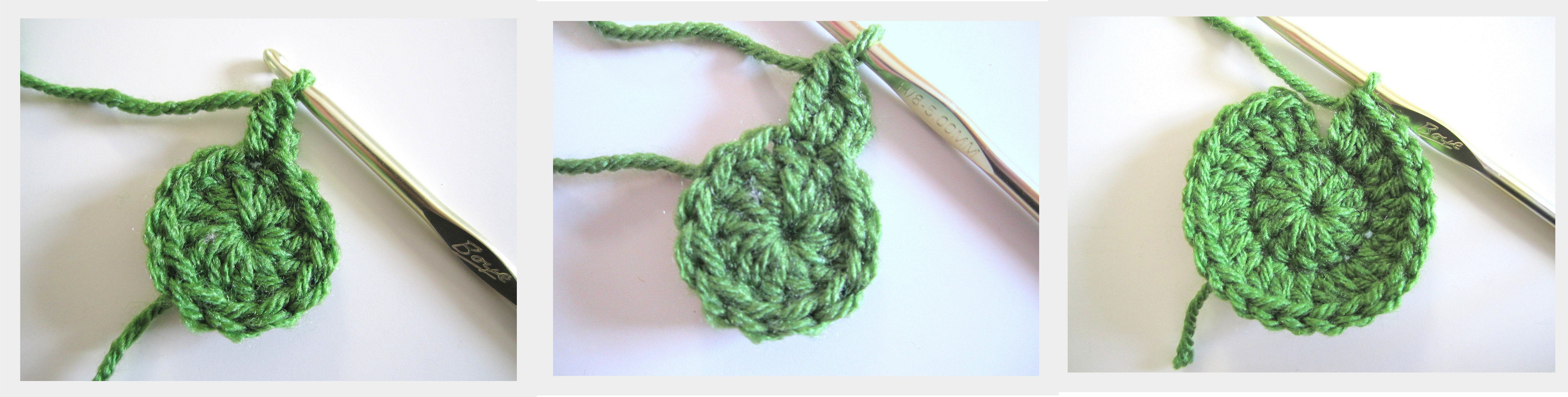 continue with 11 more double crochet into the circle for a total of 12 DC (the initial chain 2 does not count as a DC)